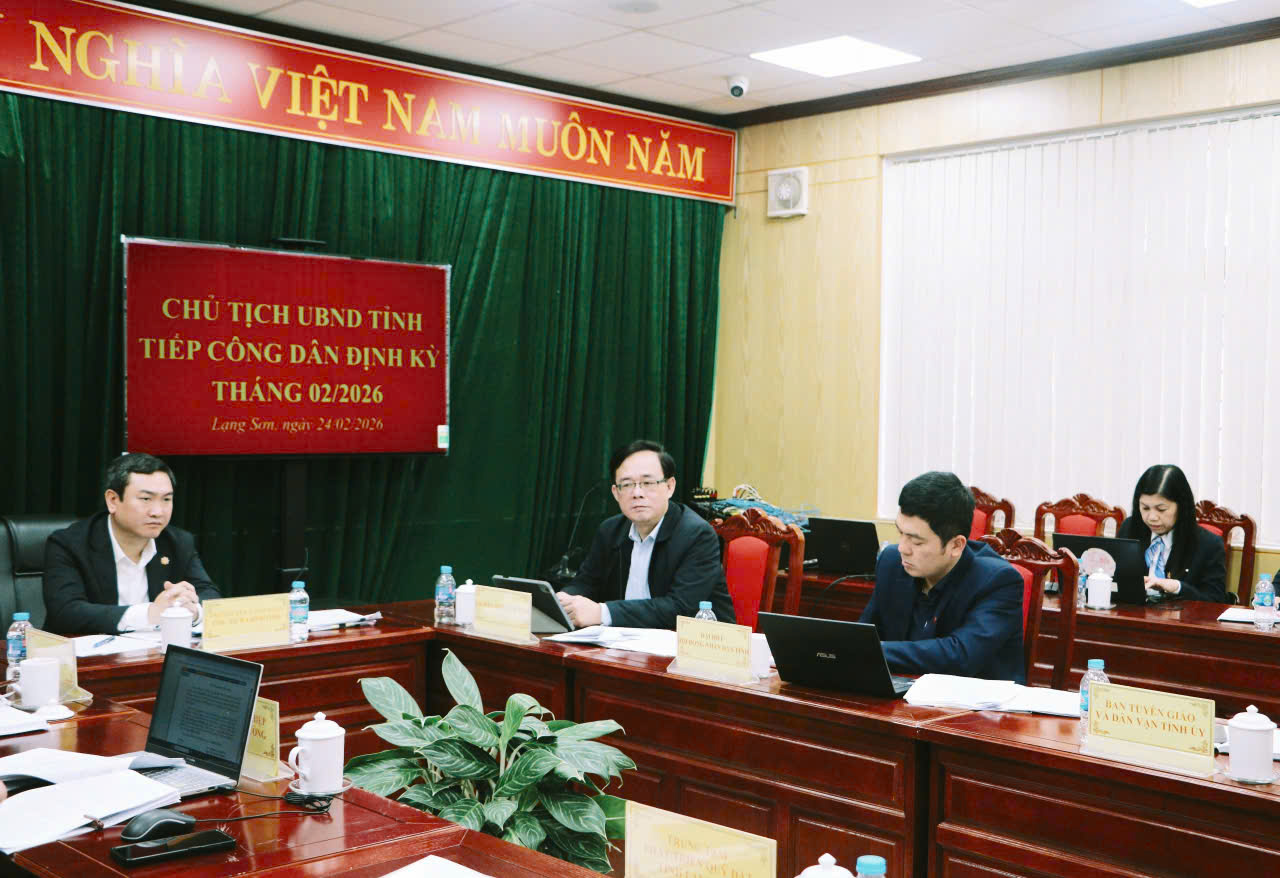 Sáng ngày 24/02/2026, đồng chí Nguyễn Cảnh Toàn, Chủ tịch UBND tỉnh, Chủ trì tiếp công dân trực tiếp tại Trụ sở tiếp công dân của tỉnh. Tham dự tiếp công dân gồm có đồng chí Triệu Quang Huy, Phó trưởng Đoàn chuyên trách phụ trách ĐBQH tỉnh; đồng chí Vương Lê Hoàng, Phó trưởng Ban Pháp chế HĐND tỉnh, đại biểu HĐND tỉnh; đại diện lãnh đạo Ban Tuyên giáo và Dân vận Tỉnh ủy; Ủy ban MTTQ Việt Nam tỉnh; đại diện lãnh đạo các Sở, ngành: Thanh tra tỉnh, Nông nghiệp và Môi trường, Văn phòng Ủy ban nhân dân tỉnh, Trưởng ban tiếp công dân của tỉnh, Trung tâm phát triển quỹ đất tỉnh; UBND các xã: Tuấn Sơn, Chiến Thắng, Lộc Bình, Na Dương và UBND phường Kỳ Lừa.
